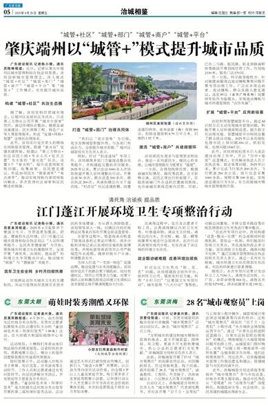 广东建设报讯 记者陈小珊、通讯员袁美清报道:2025年4月是第37个爱国卫生月。为营造更加整洁、舒适、健康的生活环境,江门市蓬江区城市管理和综合执法局以“人居环境再提升,全民共享