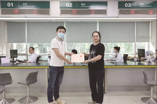 开发企业代表领取首批“网签即预告”不动产登记证明(图源:广州市规划和自然资源局) |