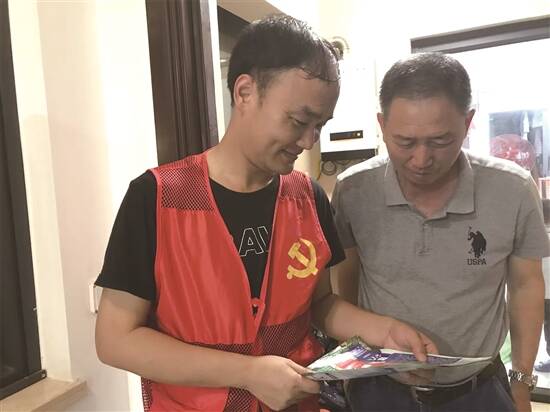 刘文勇(左一)入户宣传垃圾分类知识(受访者供图) |