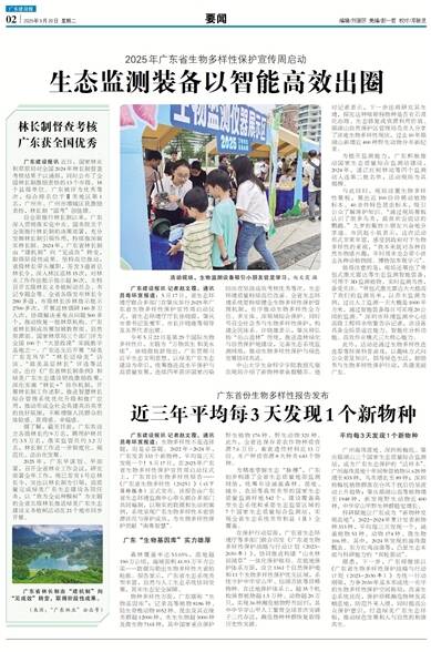 广东建设报讯 记者赵文霞、通讯员粤环宣报道:生物多样性不是选择题,而是必答题。2022年-2024年,广东发表333个新物种,平均每三天发现一个!5月17日,在2025年广东省生物多样性保护宣传周启动仪式上,广东首份生物多样性报告——《广东省生物多样性(2025)》(以下简称报告)正式发布。该报告由广东省生态环境监测中心牵头联合多部门共同编制,以翔实的数据和生动的案例,系统呈现广东生物多样性本底资源状况与保护成效,为生物多样性保护贡献“南粤智慧”。 广东“生物基因库”实力雄厚 森林覆盖率达53.03%,湿地超190万公顷,海域面积41.93万平方公里……数据勾勒出生物多样性大省的轮廓。报告显示,广东省生态系统类型丰富,自然与人工生态系统协同发展,筑牢生态安全屏障。 物种多样性方面,广东堪称“生物基因库”:记录高等植物8186种、陆生脊椎动物1052种、昆虫及其近缘类群超12000种,水生生物超3000种及微生物7165种,其中国家重点保护野生植物176种、野生动物321种。此外,全省还保存着农作物种质资源7.6万份、畜禽遗传材料近13万份、水产种质资源8大种类643个物种。 为精准掌握生态“脉搏”,广东初步构建了全省生态质量地面监测网络,统筹布设涵盖森林、湿地、城乡、农田等典型类型的国家生态质量监测样地542个,建设覆盖典型生态系统和重要生态监管区域的7个国家生态质量综合监测站,实现全省生态系统类型和县(区)全覆盖。 在保护行动层面,广东省生态环境厅等多部门联合印发《广东省生物多样性保护战略与行动计划(2023-2030年)》,协同推进构建“山水林田湖草”一体化保护格局。在就地保护体系方面,设立1361个自然保护地和11个生物多样性保护优先区域,系统守护中华穿山甲、仙湖苏铁等珍稀物种。在迁地保护体系上,超35个机构保育植物超1.5万种、动物超20万只,实现36种濒危植物野外回归,其中中华穿山甲人工繁育全球首次突破子二代存活,濒危物种种群恢复取得历史性突破。 平均每3天发现1个新物种 广州海珠湿地、深圳杨梅坑、肇庆鼎湖山三个国家生态质量综合监测站,成为广东生态保护的“活样本”。广州海珠湿地十年间维管植物从625种增至835种,鸟类增长至89种;深圳杨梅坑植物群落在台风干扰后仍呈波动上升趋势;肇庆鼎湖山高等植物增至1948种,新发现野生动物近400种,中华穿山甲野生种群稳定增长。 科研赋能让广东成为“新物种发现高地”:2022-2024年累计发表新物种333种,平均每三天发现一个,涵盖植物53种、动物174种、微生物106种。其中,2024年发现的海珠微瓢虫、东方红鸡油菌等,凸显生态本底与科研能力的“双轮驱动”。 据悉,下一步,广东将继续以《广东省生物多样性保护战略与行动计划(2023-2030年)》为统一行动纲领,力争2030年基本形成统一有序的生物多样性保护空间格局,改善生态系统状况,保护珍稀濒危物种及其栖息地,防范外来入侵,同时提高公众保护意识,打造绿美广东生态样板,推动绿色发展和人与自然的和谐共生。