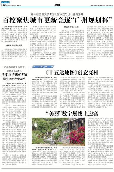 广东建设报讯 记者姜兴贵、通讯员穗规资宣报道:近日,广州市规划和自然资源局以“数智赋能城市、地图连同古今”为理念,精心设计推出《广州十五运会地图》,并在天地图·广州十五运会场馆(广州)