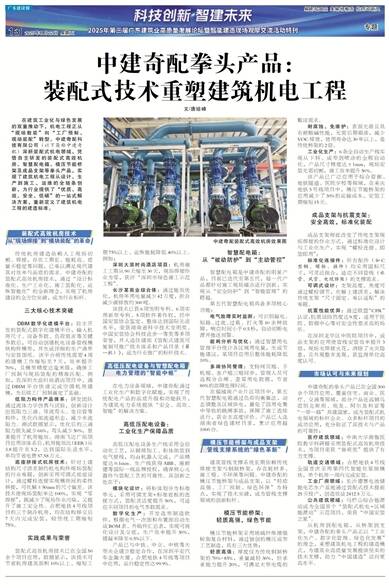 文/唐培峰 在建筑工业化与绿色发展的双重推动下,机电工程正从“现场散装”向“工厂预制、现场装配”转型。中建奇配科技有限公司(以下简称中建奇配)深耕装