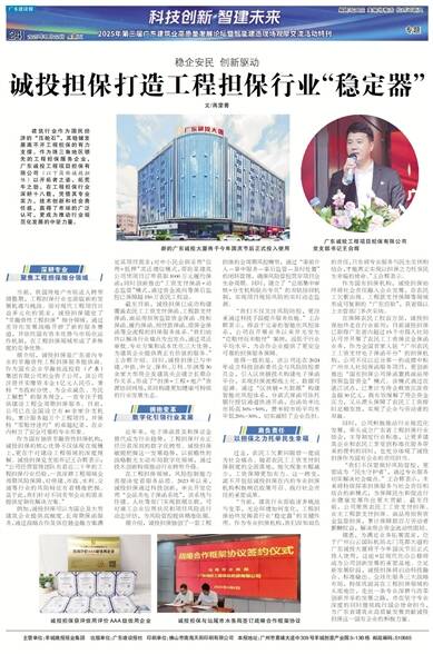 文/蒋雯菁 建筑行业作为国民经济的“压舱石”,其稳健发展离不开工程担保的有力支撑。作为珠三角地区领先的工程担保服务企业,广东诚投工程项目担保有限公司(以下简