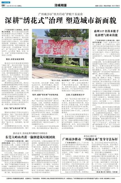 广东建设报讯 记者陈诚、通讯员黄正亮报道:第十五届全国运动会即将在粤港澳大湾区拉开帷幕。作为赛事承办地之一的广州市南沙区,在区委、区政府的正确领导下,南沙区综合行政执法局(城市管