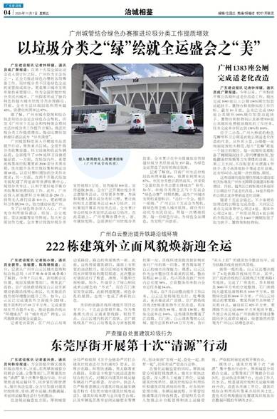 广东建设报讯 记者钟梓骥、通讯员成广聚报道:在第十五届全国运动会进入倒计时之际,广州作为主会场之一,正全力推进绿色办赛的各项筹备工作。而垃圾分类不仅是绿色全运的