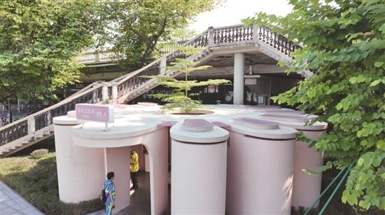 位于广州大桥底的粉色花瓣型公厕(广州市城管局供图)