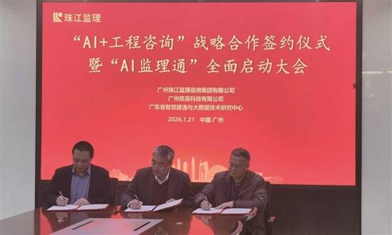 广东建设报讯 记者唐培峰报道:1月21日下午,广州筑保科技有限公司(以下简称筑保科技)、广州珠江监理咨询集团有限公司(以下简称珠江监理)与广东省智慧建造与大数据技术研究中心,在广州联合举办“AI+工程咨询”战略合作签约仪式暨“AI监理通”全面启动大会,标志着工程监理与咨询服务正式迈入“AI驱动、数据赋能”的智慧化新阶段。 此次三方合作的核心,是通过“AI+工程咨询”模式重构传统工作模式、知识体系与服务逻辑,推动行业向更智能、更精准、更高效方向演进。三方明确将深化协作,争做AI技术在建造领域深度应用的开拓者,重点实现三大赋能:为工程咨询企业提供从数据治理到智能应用的完整转型路径,构建数字化核心竞争力;为工程项目通过智能化手段实现更早风险发现、更优资源调配、更低成本损耗,直接提升投资效益;推动工程咨询从“经验驱动”迈向“数据驱动、智能协同”,助力行业整体进化。 会上同步启动的“AI监理通”,成为三方合作的首个落地成果。该系统深度融合AI语音识别、图像识别及文件扫描识别技术,实现监理日常工作全流程、全过程、全场景覆盖,带来显著效能变革——监理人员每日用于资料整理、报告撰写等内业工作的时间,从1.5至2小时大幅缩短至15至30分钟。同时彻底改变“事后补录”的传统模式,通过实时、伴随式智能速记,做到“工作到哪、记录到哪、资料归档到哪”,自动将碎片化工作输出为体系化成果,实现内业与现场工作同步推进。