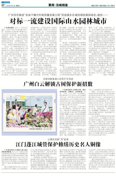 广东建设报讯 记者陈小珊,通讯员杨黛清、胡馨方、白雪报道:近日,一场以“白云古树”为主题的沉浸式剧本游,在广州市白云区江高镇峡石村上演。本次“峡石古树乡村行”活动是2026年白云