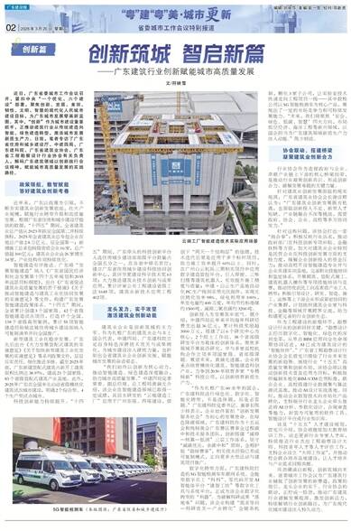 文/符映雪 近日,广东省委城市工作会议召开,紧扣中央“一个优化、六个建设”部署,聚焦创新、宜居、美丽、韧性、文明、智慧的现代化人民城市建设目标,为广东城市发展擘画新蓝图。其中,“创新”作为城市建设重要抓手,正推动建筑行业从传统建造向智能、绿色建造转型,激活城市发展新质生产力。日前,笔者专访了广东省住房和城乡建设厅、中建四局、广东建科院、广东省建筑业协会、广东省工程勘察设计行业协会有关负责人,解码广东建筑领域以创新践行会议精神、赋能城市高质量发展的实践路径。 政策领航,数智赋能 答好建筑业创新考卷 近年来,广东以政策为引领,不断夯实建筑业创新发展底座,壮大产业规模,赋能行业转型升级和高质量发展。根据广东省住房和城乡建设厅提供的数据,“十四五”期间,全省建筑业总产值从2023年跃居全国第二并持续保持,2025年全省建筑业总专包企业在地总产值2.8万亿元、居全国第一;新增施工总承包特级资质企业16家,总产值超100亿元;建筑业企业由26家增至34家,产业结构布局持续优化。 智能建造有序推进。广东将“发展智能建造”纳入《广东省国民经济和社会发展第十四个五年规划和2035年远景目标纲要》,出台《广东省促进建筑业高质量发展的若干措施》《关于推动智能建造与建筑工业化协同发展的实施意见》等文件,构建广东发展智能建造政策体系。“十四五”期间,全省累计创建3个国家级、42个省级智能建造试点项目,打造17个全国、138个省级典型案例,累计55项智能建造经验做法被住房城乡建设部纳入可复制清单并向全国推广。 新型建筑工业化稳步发展。广东先后出台《大力发展装配式建筑的实施意见》《关于加快新型建筑工业化发展的实施意见》等系列政策文件,层层压实责任、细化推进举措。截至2025年底,广东新建装配式建筑占新开工建筑面积比例达38.97%,建成21个国家级、83个省级装配式建筑产业基地。此外,2025年广东在全国率先启动省级模块化建筑试点城市建设,明确2个综合型、4个生产型试点城市。 科技创新能力持续提升。“十四五”期间,广东牵头的科技创新平台入选住房城乡建设部部级平台数量占全国五分之一,在各省中排名首位;建立广东省住房城乡建设科技协同创新中心,获评华夏建设科学技术奖63项;大力推进建筑业技术创新与成果应用,累计评审公布工程建设省级工法1648项,建筑业新技术应用工程402项。 龙头发力,实干攻坚 激活建筑业创新动能 建筑业企业是创新筑城的主力军。作为扎根广东的建筑央企与本土国企代表,中建四局、广东建科院立足自身特色深耕技术攻关与成果转化,为城市建设注入硬核力量,也折射出全省建筑业企业创新突围、赋能城市发展的奋进姿态。 “我们始终以创新为核心动力,推动智能建造、绿色建造深度融合,助力城市高质量发展。”中建四局党委常委、副总经理、总工程师黄晨光介绍,该企业在智能建造领域已取得一定成绩,其自主研发的“云端建造工厂”应用于广州东塔、西塔建设,曾创下“两天一个结构层”的佳绩,技术迭代后更是应用于多个标杆项目,助力施工效率提升60%以上。同时,在广州白云机场三期相关项目中应用数字建造管控平台,引入焊接、三维扫描等建筑机器人,有效提升施工精度与质量;中建·白云生产基地自动化PC生产线则采用光伏组件,实现光伏转化效率98%、绿电利用率100%,年发电量约400万度,年均节约标准煤约1500吨、减排二氧化碳约3200吨。 创新投入为发展筑牢底气。据介绍,中建四局近年来平均每年科研经费支出超36亿元,累计科技奖励超3000万元,搭建了以6个研究中心为核心,2个院士工作站、38个省部级研发平台为载体的创新体系,聚焦多领域开展前沿研究,并与多家高校机构合作立项多项国家级、省部级课题。展望未来,黄晨光透露,企业将重点培育模块化建筑、智能建造科创产业,力争到2030年培育多家“专精特新”科技公司,以创新培育新质生产力。 “作为扎根广东60余年的国企,广东建科院进行绿色化、数字化、智能化转型,不是选择题,而是必答题。”广东建科院党委书记、董事长陈少祥表示,企业始终紧扣“创新发展 服务社会”为初心的发展使命。在绿色降碳领域,广东建科院作为十五运会和残特奥会广东赛区赛事全过程碳中和技术服务团队,创新搭建“减排—核算—抵消”三层工作体系,坚守“减碳优先,余碳中和”原则,全程护航“最绿赛事”,相关技术经验已形成可复制模式,正向更多大型活动与建筑项目推广。 数字化转型方面,广东建科院打造的5G智能检测车车联网系统、全能型数字员工“科科”、零代码开发AI智能体平台“建智工坊”等数字化工具与系统平台,正成为该企业数字化转型的“利器”。为破解科研成果“落地难”问题,该企业构建“需求导向—科研攻关—产业转化”全链条机制,孵化3家子公司,让实验室技术快速走向工程项目一线——其中数检公司以5G智能检测车为核心产品,展现出了一定的市场竞争力和可持续发展能力。“未来,我们将聚焦‘安全、绿色、低碳、智慧’四大方向,布局低空经济、海洋工程等新兴领域,以国企担当为广东建筑领域新质生产力注入动能。”陈少祥说。 协会联动,搭建桥梁 凝聚建筑业创新合力 行业协会作为连接政府与企业、串联产业链上下游的核心桥梁纽