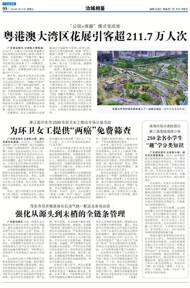 广东建设报讯 记者陈小珊、通讯员谢军权报道:4月2日,“关爱城市美容师·守护女性健康”湛江市适龄妇女“两癌”免费筛查项目(环卫工人专场)启动。该活动由湛江市总工会、湛江市城市管理