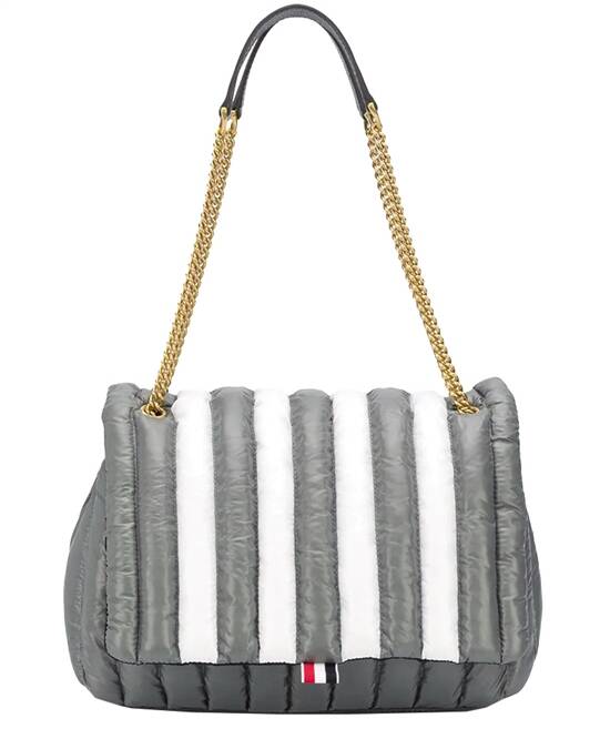 拼接款式比起纯灰色,融合了更多鲜明的色彩,其实日常使用更加百搭。既然今年流行黄色和灰色,那么黄色拼接灰色的手袋,就是必入手的款式,无须犹豫。Marni经典的拼色包包,今季又有许多新配色,选择不同灰度的灰色拼接,给人感觉既深沉又优雅。Karl Lagerfeld Joystick的手提袋就多了一丝调皮感,Thom Browne的条纹款就偏向休闲,按照自己的日常风格选择最好。