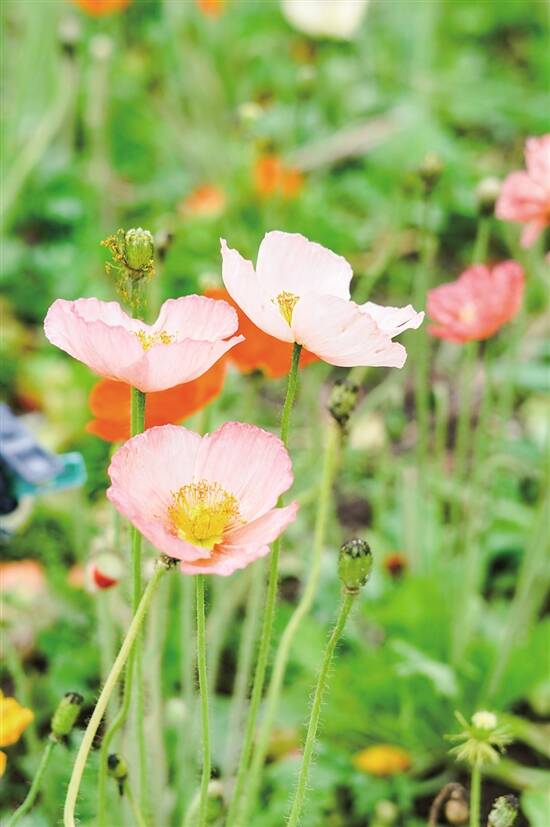 不仅是虞美人,在二沙岛上还有很多不同品种的花花,格桑花、孔雀草、醉蝶花等等,在沿江路上,还能看到大片的勒杜鹃,非常壮观。
