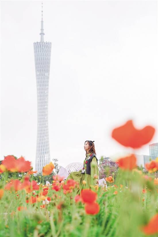 虞美人花海和广州塔同框