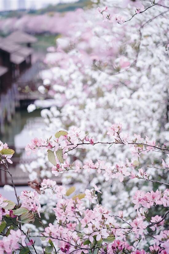 春天的花花色彩多样,但是太鲜艳的色调也不太适合和人合照,粉粉嫩嫩的洋紫荆和樱花,可以说是不少少女们的最爱,换上一身甜美的连衣裙、JK制服或是时下流行的汉服,都能拍出很梦幻的照片。