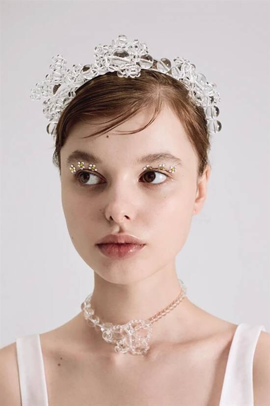 当然,在时尚杂志频繁露面的玻璃珠子发饰和面罩,一般人难以驾驭,但并不妨碍它散发独特的美感。