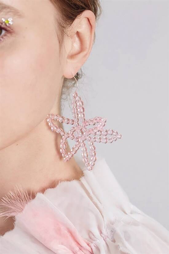 耳环、项链、戒指等首饰,即便用的已经是比较小型的珠子,设计看起来还是略带浮夸。正是这份浮夸,令设计比传统的串珠编织多了一分时尚的韵味。耳环是饰品中比例很重的种类,SUSAN FANG里有多个款式长耳环,戴起来在视觉上有拉长脖子线条的效果,每一款都值得单独陈列欣赏。