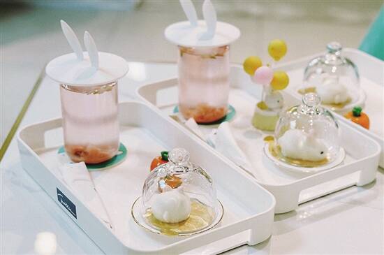 套餐包含70分钟撸兔时间,配有一杯花茶同一个兔仔型甜品