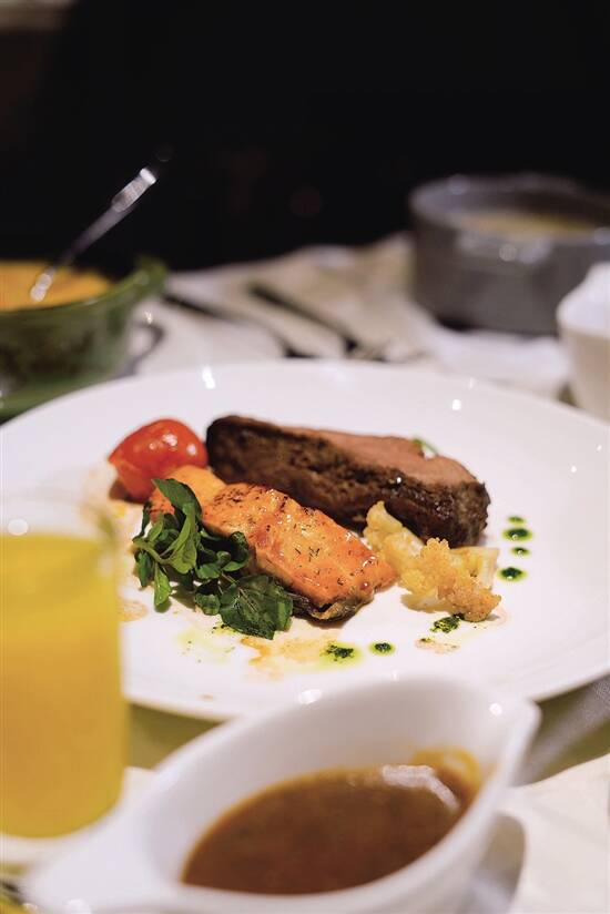 餐前会有果汁送,都几开胃,牛扒种类都越做越多,碳烤带骨牛肋排用手抓住食特别豪迈,牛肉好嫩,可以直接撕扯出来,加上微焦口感十分正。除咗牛扒仲有海陆双拼,有鱼同牛扒双拼,鱼肉同牛扒一样大细厚薄,煎得啱啱好唔会太干身。