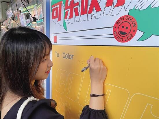 咁多年嚟,可乐报一直都坚持用粤语写作,每期仲有新奇又盏鬼嘅“粤语课堂”准时同大家见面,可以话粤语就係Color嘅标志!今次我哋特别喺地王广场附近,推出呢间Color专属嘅报亭,门面上就梗係唔少得代表住Color嘅粤语文化啦!“静鸡鸡”、“蛇王”、“猪头炳”呢啲大家成日讲嘅词语,喺呢度都可以搵到,之后我哋仲会定期换唔同嘅粤语词汇,务求带畀大家最fresh嘅体验!