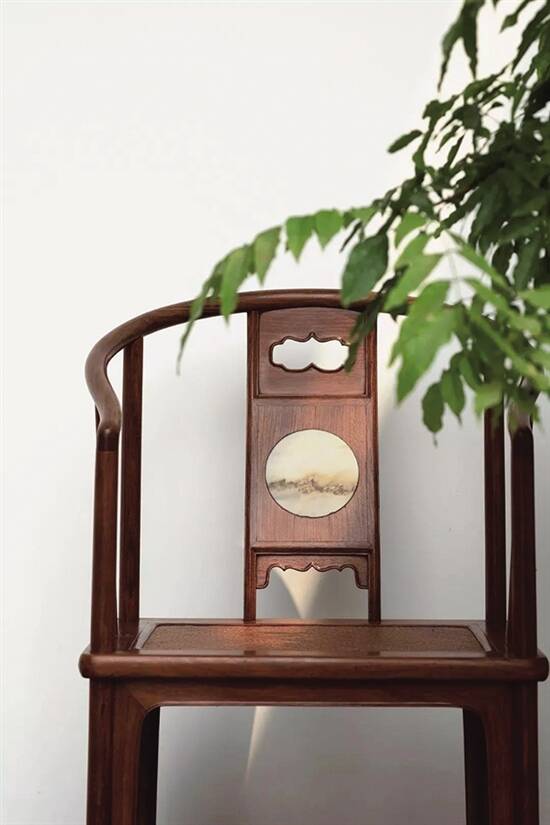 椅子在古典家具中,结构最为复杂,与人的距离最为贴近,是兼具实用和至高美学特性的单品。红木单品要与现代家居结合,“明式”简练秀丽的椅子无疑是不二之选。“广作”特有的云石镶嵌其中,享夏季闲凉,搭配北欧风标志性的白墙、绿植摆放,混搭出现代与古典的中性气质。