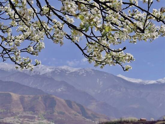 西藏的春天是从林芝开始的。波密桃花沟、尼洋河畔、雅鲁藏布江大峡谷,无人修剪的野生桃花灼灼其华。而此时,川西阿坝大金川河谷的万亩梨花,在碉楼、藏寨和春雪的掩映下,呼应着林芝的桃花,簇簇生机,怒放着生命,那些清朝士兵带来的梨子,如今化成藏居屋前屋后的美好。