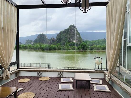 星湖边最多的小资店,唔係咖啡店、甜品店,而是叫“酒店”嘅湖景民宿。“涟岸”係一间花园式民宿,复古金鱼池嘅四周,都係客房,琳琅满目嘅花花草草,配上湖景的湖光山色,有几分似喺云南大理沧海边。这里顶楼的花园係公共区域,可以瞰望整个七星岩景区。“星湖揽月”以古端州宋文化为主题的酒店,设有全湖景、全天窗房,大堂是半开放式的,可以进去喝喝茶,因为是几栋民宿组成的,还会配置私房菜、下午茶、书法、茶艺等,有酒店的味道。类似这种背靠群山,面向星湖的民宿还有很多,价格丰俭由人。
