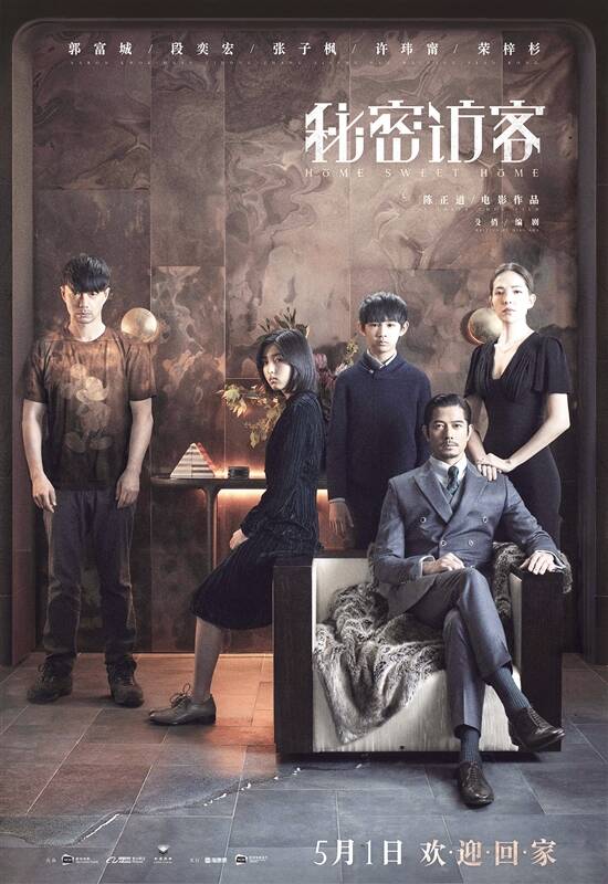斋睇电影海报就已经feel到呢部戏嘅诡异氛围,郭富城一家四口加埋秘密访客段奕宏,每个人睇落都心事重重。戏入面饰演两姐弟嘅张子枫同荣梓杉,喺《唐人街探案》同《隐秘的角落》都有令人惊艳嘅演出,今次两位“表里不一”嘅细路联手出演,相信呢两姐弟应该都暗藏黑暗面。郭富城、段奕宏两大影帝嘅合作,相信都係大家好期待嘅画面,再加埋许玮甯饰演嘅凶狠人妻,真係好新鲜嘅搭配。海报嘅slogan就係“欢迎回家”,睇到呢个势,大家又有冇兴趣一齐“回家”感受下呢?