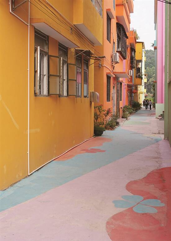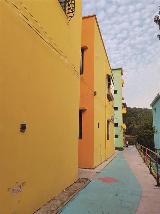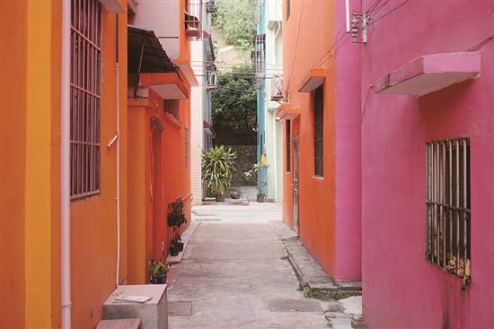 想要拍出网上的高级图片,在这并不难,一条条缤纷多彩的巷子,一排排整齐的屋舍勾勒出丰富的几何元素。简节、明快、多彩,每个角度都有惊喜,每一个转角都会遇见另一个颜色。