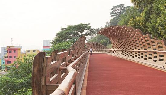 有两个打卡点值得留意!村口有家咖啡店,人气挺旺的,很多人在这里闲坐,喝茶聊天,享受人生。门口摆放的玩偶也十分可爱,引得人们纷纷在此拍照。彩虹村旁边就是白水带公园的云道,整体外观仿木栏杆设计,有部分呈现网状不规则造型,非常有现代感,这也是理想的取景地。站在云道上,可俯瞰彩虹村的全景,在绿树鲜花的掩映之下,确实非常漂亮。