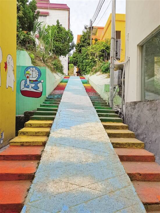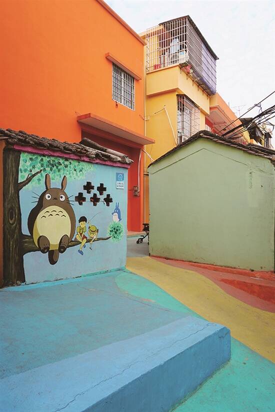 因为村子是依山而建略偏僻,原来以为这村子应该不会有很多游客,谁知一转角便发现,靓丽的墙体以及随处可见的趣味涂鸦前,都是举着手机或是相机特地来打卡的游客。村子几乎所有建筑墙面都是粉刷上不同的颜色,通过赤橙黄绿青蓝紫艳丽色彩的混搭,原本平平无奇的村子变成一个彩色斑斓的世界。色彩,赋予一条村子新生命,游走在这里,就像是吃了一颗彩虹糖一样,让人甜入心扉,即刻开启愉悦心情。
