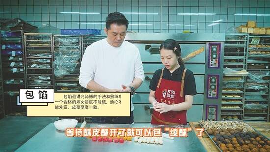 岭南品粤菜系列第一期《嫁女饼》,麦包走进广州老西关传统饼铺,跟90后“礼饼传承人”蔡心老师学习整“嫁女饼”。绫酥嘅制作好有讲究。开皮,要刚柔并济,讲求力与心嘅结合;开酥,则係饼身是否松化嘅关键,所以一定要耐心细致;到咗包馅嘅时候,手势要快而不乱,皮薄而不破係基本,皮面均匀细腻就係经验之道啦。虽然麦包係首次实操,不过几次尝试之后就完美上手,包出咗连老师都觉得合格嘅成品。有心嘅麦包仲亲手为每一个绫酥印上双喜红印,将自己嘅美好祝愿注入点心。从入炉烤制到趁热出炉,佢都亲力亲为,冒住热气嘅每块饼,都满含麦包嘅甜蜜叮嘱:天下有情人都要开心快乐,甜蜜一生!
