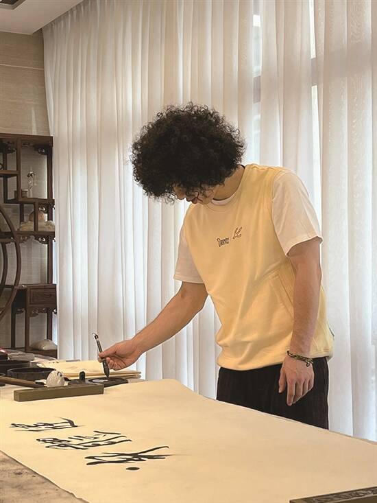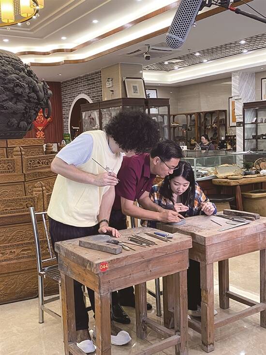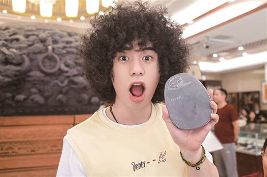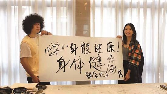 广东肇庆市传统端砚嘅制作技艺,係国家级非遗之一。所以嚟到制作端砚嘅地方, Mike同观辰突然变的严肃起身,原本鬼鬼马马嘅两个人秒变乖乖好学生,认认真真听书,小心翼翼操作,生怕落手重咗,整坏珍贵嘅石材。2010年端砚嘅制作技艺,被评为岭南文化名片之一,传承人柳师傅叫佢哋放胆去学,男仔雕祥云,女仔刻牡丹,坚硬砚石喺锋利刻刀磨炼下,渐渐成为一件艺术品,Mike趁机玩起中西结合嘅创意,将自己嘅英文名落款传统墨砚上。最后Mike同观辰仲用端砚墨汁现场挥毫,写下一幅诚意满满嘅“身体健康”送俾大家,将呢份非物质文化遗产“印”于纸上,留作永久珍藏,情谊满满、意义非凡。