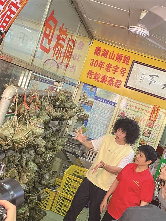 肇庆裹蒸粽制作技艺係首批肇庆市市级非物质文化遗产之一。中意食嘢,同时又想keep身材嘅Mike,讲起“粽”就即刻双眼发光、好兴奋。急不及待想跟传承人娇姐学嘢。由铺粽叶开始,先落几多糯米,再放多少绿豆,每个分量都有讲究;连五花肉嘅肥瘦程度、咸蛋黄是否金黄,都同最后成品嘅口感息息相关。娇姐仲同Mike讲,随著现代人对食嘅要求越来越高,佢哋仲会根据客人嘅要求,改良制作方式创意新口味,曾经就有客人特别中意咸蛋黄,于是就诞生咗“七龙珠”版裹蒸粽,里面放咗足足7粒蛋黄!传统嘅肇庆果蒸同外地嘅粽相比,最大差别就係佢会用柊叶嚟包,无论係边种材料做馅,粽叶包起之前嘅最后一层糯米都非常重要,因为糯米除咗係粽嘅主体之外,仲有帮馅料“保鲜”嘅作用——将所有食材紧紧包裹啲馅料,係裹蒸粽历久常鲜嘅关键。因为自细中意食粽,娇姐就学咗呢门手艺,佢都好希望年轻人可以将呢项非遗技艺好好传承落去。