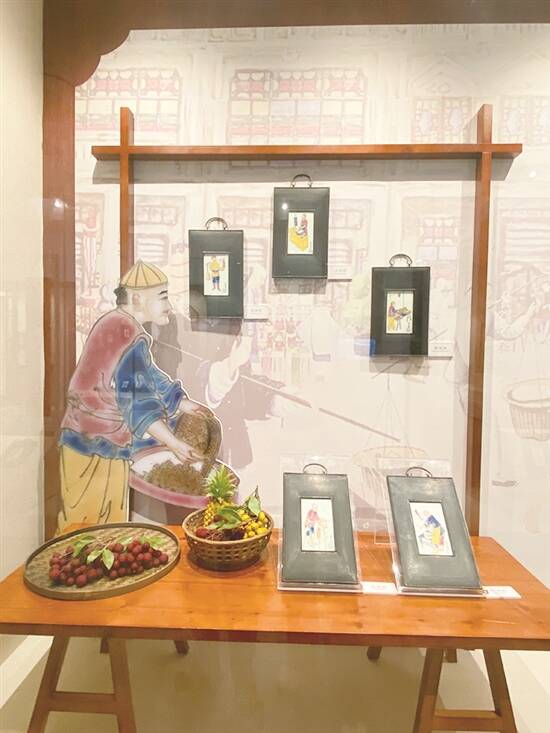 馆内分成唔同嘅专题展厅,向大家展示以“广州华侨华人与历史贡献”为主题嘅各种故事。博物馆内大部分嘅藏品,都由中国侨胞组织捐献,每件藏品都记载住捐赠者嘅珍贵故事。就好似馆内展出嘅清代市井风情粉彩瓷板画咁,係来自一位英国籍华人收藏家嘅藏品,一片片洁白嘅瓷片上,用鲜艳嘅色彩刻画出栩栩如生嘅劳动人民形象,佢哋或者係制作茶叶嘅采茶工,或者係叫卖小商品嘅街头小贩,或者是传统工艺嘅手工艺人……向大家述说“三百六十行,行行出状元”嘅深刻意义。有啲同类型嘅瓷板画仲会被安置係特制嘅场景置物架上,更具体地还原当年嘅劳动场景,无论过去几耐,呢啲瓷板画就好似一张张旧照片咁,记载数百年前市井嘅喧嚣同繁华,同海外侨胞浓浓嘅乡愁与思念。