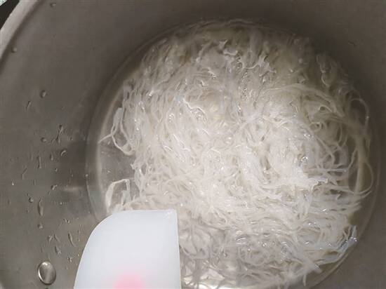 将提前浸泡好的琼脂,放入水熬至融化,琼脂液容易冷却凝固,再次加热至融化即可。