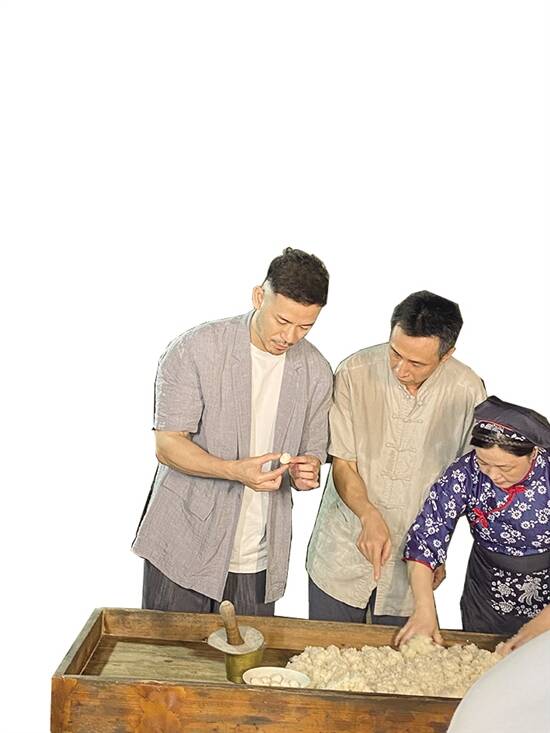 虽然係一大早就要出门,沈震轩依然觉得好兴奋,因为“喜爱夜蒲”嘅佢,好少机会神早流流去饮酒!嚟到传承人周氏夫妇嘅酒窖,浓浓酒香十分勾魂,酒埕内嘅糯米酒澄澈醇香,非常醉人。对酒文化甚是喜爱嘅阿沈,忍唔住对制作糯米酒工序嘅好奇,马上向师傅请教。蒸饭、做酒曲、拌曲……原来一缸糯米酒,要经过十几道工序先可以完成。阿沈心喐喐,话想马上落手体验下,周师傅梗係乐意奉陪啦,一边手把手教学,仲一边讲解制酒嘅温度调节、湿度控制等各种注意事项。阿沈跟住师傅搓散热辣辣糯米饭嘅时候,被阵阵米香不停地“诱惑”,令佢谂起自己一早出门都未食早餐,肚仔已经饿到咕咕声。周师傅推荐佢试下用糯米酒煮成嘅“炒鸡酒”。鲜嫩鸡肉经过糯米酒浸煮,变得更嫩滑可口,酒气在烹煮过程中挥发,留下香甜,同鸡肉结合后,齿颊留香,令人回味无穷。据闻“炒鸡酒”补而不燥,男女老少都啱食噶!