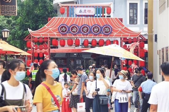 一到节假日就人头涌涌嘅永庆坊,前身为永庆大街,位于有百年历史嘅恩宁路中段,承载住西关老城几代人嘅辉煌与记忆,后来在城市扩张逐渐落败,挤满老房、危房。如今“重获新生”嘅永庆坊,既保留咗原汁原味嘅老广风采与岭南风情,又积极满足当代年轻人嘅审美趣味。呢度每一家店,都在外观上保留骑楼、西关大屋嘅整体风貌特色,入到里面先发现係风格迥异嘅潮玩店、网红店,有种如开盲盒般嘅刺激有趣。前不久嘅中秋佳节,呢度布置嘅场景特别有氛围感,应节之余也引来咗唔少游客前来打卡。