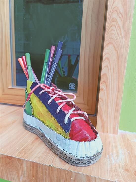 贴士:纸鞋成型之后,可以根据自己嘅喜好,帮鞋仔上色、装饰,作为笔筒、杂物收纳盒,又或者just放喺台头做装饰,都会几别致。