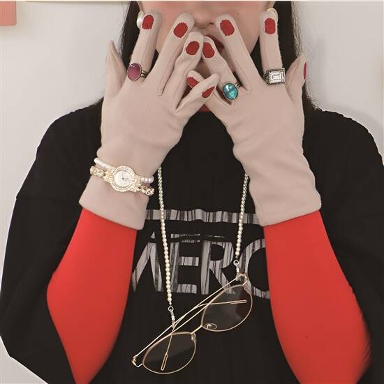 传统手套戴到密密实实,保暖功能行第一。依家嘅新款手套,有温度也要风度,保暖冇减分嘅同时,仲会整到鬼火咁靓添。怕靓靓美甲被遮住?将靓甲“涂”喺手套外面咪得咯!如果觉得普通甲油唔够吸睛,换成大粒钻石就掂晒啦。拥有“灭霸”同款手套,包你成为全场焦点,衬埋手套版珠宝链条,贵气马上加100分。如果係追求趣味嘅朋友,仲可以选择喺手套指尖点缀毛球、彩色纽扣等等小饰物,别有一番滋味。好多针织手套亦玩出新意,被织成卡通IP嘅造型,仲可以根据客人嘅要求定制尺码同配色,完全配合你嘅需求。