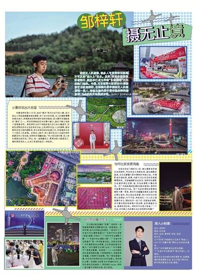 别看邹梓轩是个00后,他的“摄友”资历已经不容小觑,因为他从小学起就跟着爸爸玩摄影,到了初中的时候,无人机摄影慢慢在国内流行,深感新奇的梓轩便开始研究航拍,成为最早涉猎航拍的“摄友”之一。梓轩觉得航拍艺术的最大魅力,就在于能让他换个视角看世界。虽然梓轩当时只将航拍视为自己的兴趣爱好,但愈发成熟的技术以及优秀的作品,让他得到专业人士的青睐,被央媒单位签为特约摄影师,参与多种活动的拍摄工作,仲受邀参与多个大型无人机表演。在很多人眼中,将小爱好玩出大名堂的梓轩都算係年少成名啦,但梓轩好清醒知道:“年少成名是好事,但人有时候是会轻狂的。”所以,他一直提醒自己,要更加努力提高自己,看到更优秀的人,让自己变得和他们一样优秀。