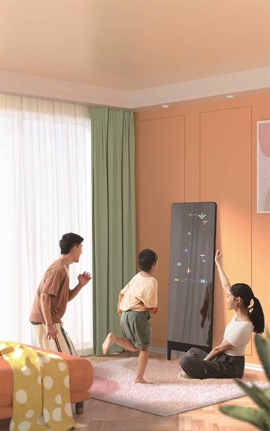 要把自己的状态操fit,运动、健身点可以少?照住AI智能控制的全身镜嚟做运动,简直好似有一个私人教练咁!平时,佢可以做一块简单的镜子,辅助你穿衣打扮、整理仪容,要运动的时候,点击开关,镜面即刻变成功能面板,你可以选择你想要跟练的运动,例如健身操、美体舞蹈等,“镜子老师”会根据你输入的身材数据,为你量身打造最适合你的健身套餐,整理分析你每次锻炼的数据,不断调整你的锻炼计划,令你运动起来事半功倍。唔少“魔镜”品牌仲喺系统中增加组队、连线功能,让你锻炼不再孤单,更有动力!有小朋友的家庭,可以喺智能全身镜上选择儿童模式,让它化身“驻家”的体育老师,陪住小朋友快乐做运动,帮你悭返唔少体力嘎。
