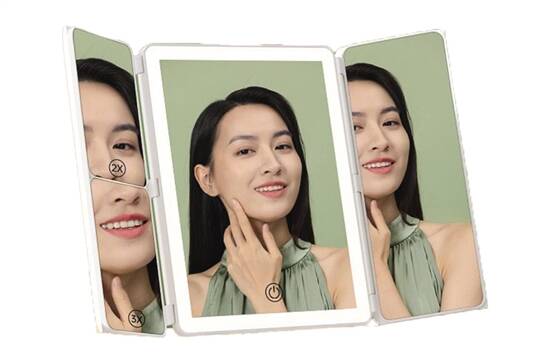 想自己学化妆,对住块镜练习,当然会越化越好。不过,万事开头难,如果有专业化妆师从旁辅导下,学化靓妆就会事半功倍啦!新上市的化妆镜,就可以好似专业化妆师咁帮你助攻。LED灯化妆镜,size同普通台面镜差唔多,除咗可以根据化妆者的肤色还原真实的彩妆效果之外,仲可以模拟不同环境的光线,令你的妆容可以fit晒不同的场合。高清镜面可以帮你睇清楚妆容细节,而多面分屏设计就贴心咁放大局部,全方位、无死角协助你化妆;镜腿支架仲设计成简易收纳盒,可以放置小物件、小工具,随手可以取用,非常贴心。在高配一啲的智能化妆镜,会配置埋视频功能,镜面上可以直接播放小屏视频,可以一边睇化妆师教路,一边实操,化妆新手就方便好多!