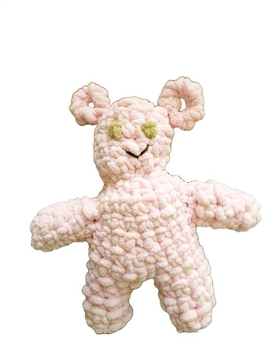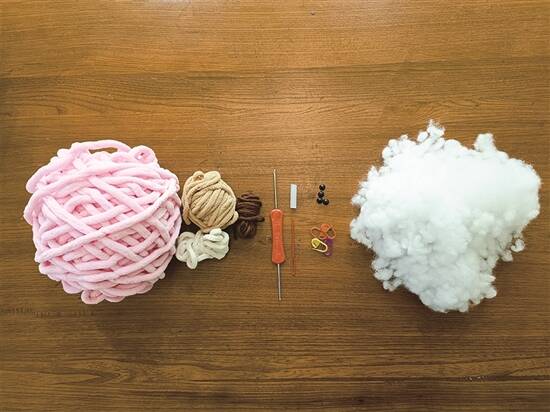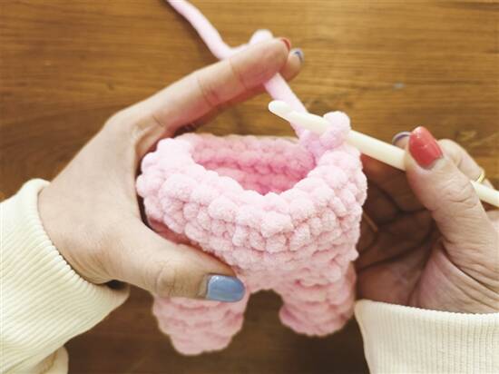 小熊的“皮囊”编织至90%时,就可以往里面填充珍珠棉,根据自己的喜好调整松软程度。