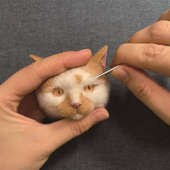 羊毛毡手工,就係利用羊毛材料制作成各种工艺品,因为用具、制作不算复杂,过程也很解压,近年来受到不少年轻人的热烈追捧。而CiCi最初接触羊毛毡呢门手艺,则係因为她的爱猫“L哥”。当时因为想制作一份专属于“L哥”的礼物,咁啱北京有个羊毛毡手艺人来广州授课,于是她就去报名学习,为“L哥”做出咗一个专属于它的羊毛毡头像。CiCi坦言,呢个羊毛毡处女作,其实有好多瑕疵,但她一直保留至今。这一次尝试亦打开咗CiCi日后新的职业路向,因为对呢门手工艺十分感兴趣,她开始深入研究、精进技艺。随住越来越多客户找她定制,CiCi干脆将兴趣变成职业,专职做羊毛毡。