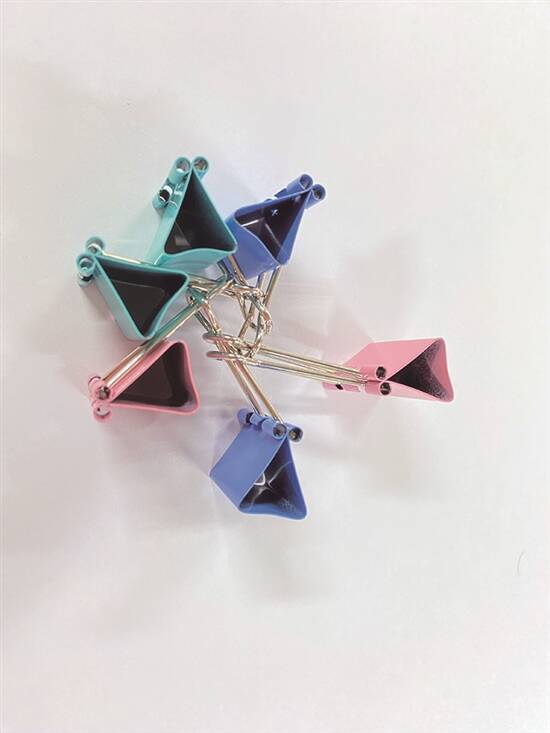 长尾夹作为一种办公文具,可以帮我哋夹紧文件,便于整理。其实,除咗夹文件,佢仲有好多隐藏用法噶。譬如用两个夹仔夹住一张纸,就可以变身手机支架,自拍视频彻底解放双手;或者将夹仔合上,然后将相片夹喺长尾部,就可以摆放图片和便利贴啦;仲可以用于整理各种耳机线,用长尾夹夹住耳机线中间部,凌乱的耳机线瞬间变得有条有理。依家可以发挥你嘅想象力,整埋各种新奇装饰品,令办公环境别有一番风味。