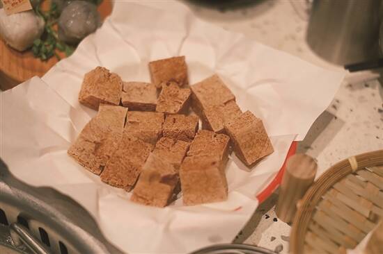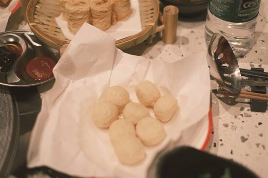 同平时嘅火锅店有少少唔同,呢度会提供特色小食俾大家打个牙骹。臭豆腐嘅臭味藏于豆腐芯内,未咬开焦脆嘅豆泡皮时,口中已满是油香,咬破豆腐芯,特有嘅豆腐臭味即刻上头,令人又爱又恨;鬼马油炸鬼偏油腻少少,但蘸上老板特调嘅泰式酱汁,解腻又开胃。长洲限定嘅白鱼蛋,气势十足嘅铜锅牛肉面,都係在台式小食基础上改良,港台风味都有晒。有咁多得意嘅小食,就一定有个得意嘅老板——老板好中意同你推介佢哋嘅镇店好物雪花清酒,咋看平平无奇,但酒瓶倒转,原本沉底嘅酒料就会如雪洒落,好似水晶球咁浪漫。