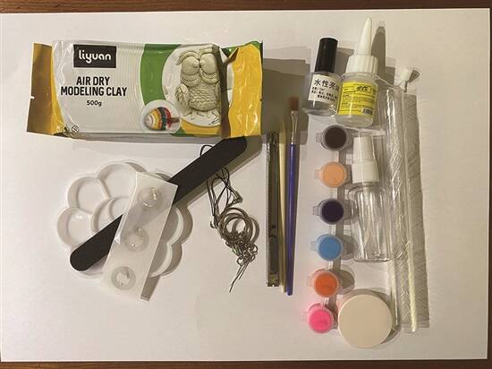 1 准备好要用嘅材料和工具:粘土、塑料刮刀、亚克力管、12色颜料等,如果怕麻烦,可以成套购入,方便快捷冇甩漏。