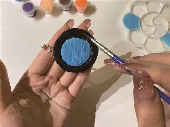 6 最后再用比圆饼细啲的瓶盖,为佢打造一个唱片形状,等自然风干后就可以根据自己钟意的搭配上色啦。