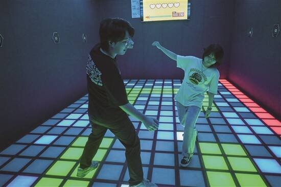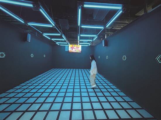 游戏场景具有赛博朋克元素,多彩方格的不断移动,给玩家带来不一样嘅视觉冲击,搭配多彩的灯光烘托气氛,令成个场景更具科技感,打卡影相劲出片。游戏开始时仲会播放动感音乐,每一关卡的音乐都会随着游戏难度而变化,闯关难度亦都从绿色固定喺中间,到红色格子追着玩家跑,令玩家可以完全沉浸喺游戏中。可以约埋朋友一起参加,亦都可以叫店员帮手邀请陌生人一起组队,人数最好控制喺4-6人左右,体验感最佳。喺快节奏嘅游戏下,大家会越来越有默契、越来越合拍!