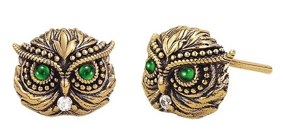 KIKIPANDA-黄金绿宝石猫头鹰耳钉